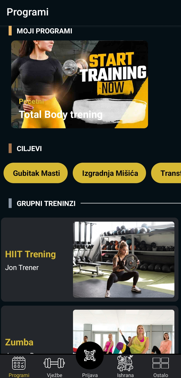 Aplikacija vam pruža način da svjom članovima pomognete kako da postignu svoje fitness ciljeve kombinirajući optimalne trening programe i prilagođene planove ishrane.