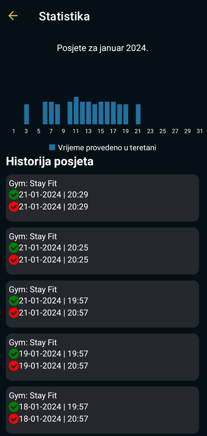 Aplikacija omogućava korisnicima efikasno praćenje i upravljanje članovima fitness centra. To ukljucuje dodavanje novih članova, ažuriranje informacija o članovima i praćenje njihovih aktivnosti unutar aplikacije.