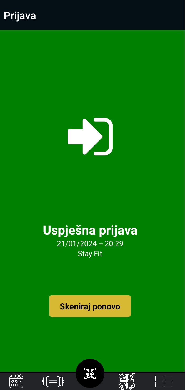 Ova funkcionalnost koristi QR kodove za brzu i jednostavnu prijavu i odjavu članova. Članovi jednostavno skeniraju svoj QR kod pomoću mobilne aplikacije kako bi označili svoju prisutnost.